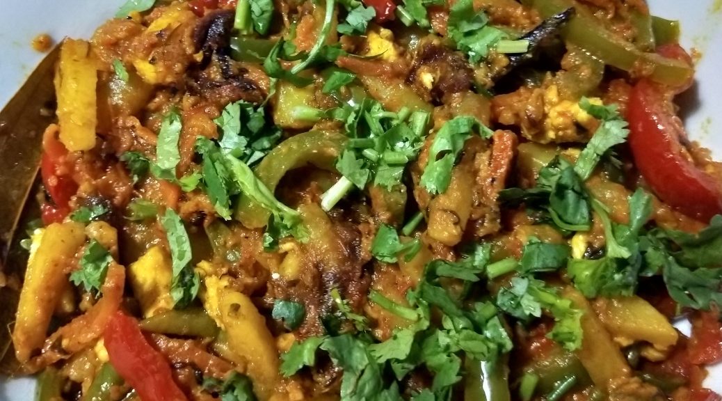 Capcicum : 1 yellow, 1 green, 1 red(cut into thin long pieces)