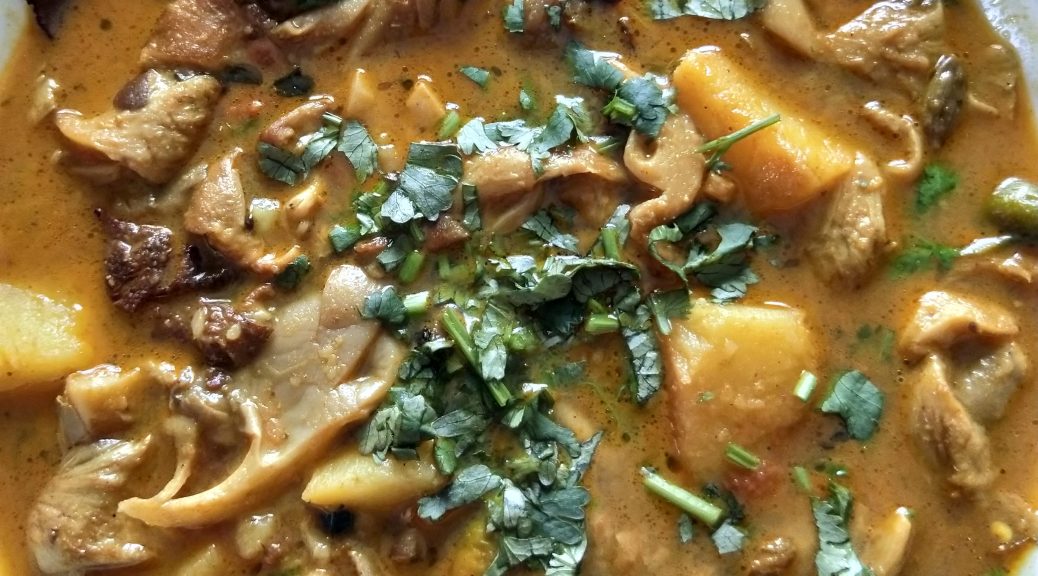 At first wash the mushrooms very well and cut them into lenghthwise and boil them for 1 min into boiling water and drain the water with a drainer. Now take a kadai add oil into it and add panchforon , dry chilli , bay leaf and whole garam masala. Now add the potatoes and fry for some time . Then add turmeric powder, salt , red chilli powder , ginger paste and green chilli and fry for few seconds. Now add tomatoes and the boild mushrooms into the kadai.Add aachi kadai chicken powder into it. Cook for atleast 10 -12 mins in a low flame fry proper frying. Now add hot water into it.When the potatoes boiled properly smash few potatoes into the gravy for thickness. Now add garam masala powder and ghee into it and mix them well. At the end add freshly chopped coriander leaves ito it. Serve hot with plain rice , roti or plain parata. Enjoy this delicious recipe with your loved ones and share your experience with me in comment box.